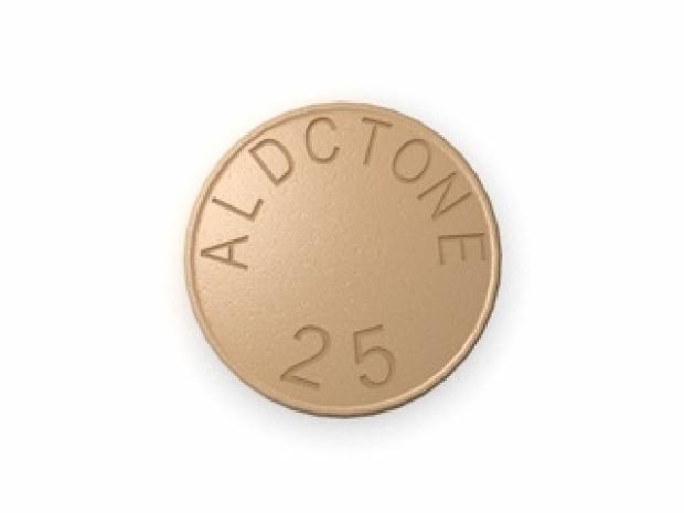 Magnium and potassium-sparing diuretic and aldosterone antagonist. It competitively associates with aldosterone receptors in in the distal parts of the nephron. It has a diuretic effect, increases excretion of natrium ions and decreases excretion of potassium and magnium, decreases urinary acidity. The diuretic effect of the medicine is moderate and appears usually after 2-5 days of treatment and continues during 2-3 days after discontinuance of the medicine intake. A weak hypotension effect appear usually in 2-3 weeks of treatment. Aldactone is used in combination with other drugs to treat hypertension. It also facilitates removal of excess fluid from the body in congestive heart failure, cirrhosis of the liver, and kidney disease.